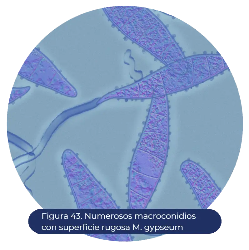 Especie de dermatofito geofílico, se localiza normalmente en suelos húmedos contaminados. En ocasiones puede causar tiña corporal o tiña de la cabeza, con bordes inflamatorios, descamación, prurito y herida eritematosas. Puede tener una reacción inflamatoria fuerte; excepcionalmente puede causar onicomicosis. El patogeno puede infectar principalmente a animales, pero también puede generar dermatofitosis en humanos (57).