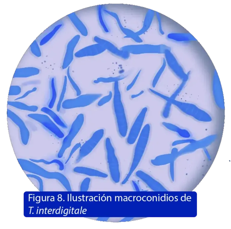 Se observa varios microconidios piriformes o en forma de lagrima, macroconidos son raros o ausentes ocasionalmente tienen un aspecto delgado, claviformes y multiseptados. Presenta espiras hifales casuales ya que en algunas ocasiones son ausentes (34).